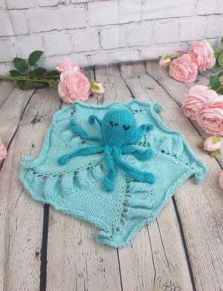 This is a Knitting Pattern for a super cute Octopus Lovey / Comforter. The Base is worked in rounds from the inside out with increasing and decreasing in each second round which gives a very unique look almost like a shell. The Eyes are worked with Swiss Darning a few beginner steps for this are included in the pattern. The tentacles are worked with a Crochet hook beginner knowledge about crochet is a must.