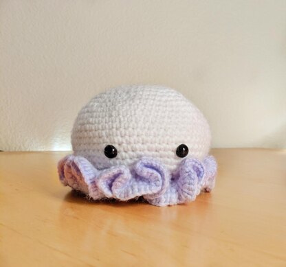 This octopus is about 4.5 x 4.5 inches and was crochet with 4 ply acrylic yarn on a 2.5 mm hook.