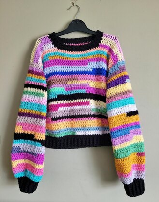 161Hey everyone and welcome to the Odds and Ends Sweater pattern! This is a made to measure pattern consisting of the double crochet stitch. You can make it like mine and use up your odd scraps of yarn, or you can make it one colour! This pattern is made to measure, and you can use any ply of yarn from your stash. I have provided the measurements that you will work towards, so you can concentrate on making an amazing sweater in any yarn that you desire! There are also a few video tutorials to help you on your way!