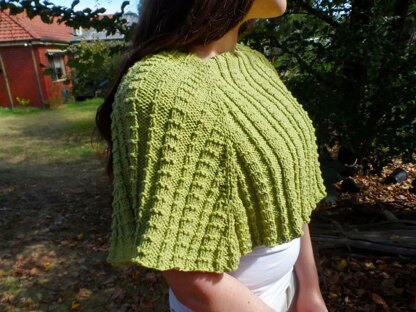 The Ode Poncho is a cotton poncho, worked top down in a ridged rib in four sections, with raglan shaping.