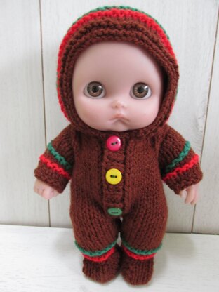 Knit a cute Gingerbread Man outfit for your Li'l Cutesies doll. Uses a thicker type DK yarn and straight 3mm needles. Also uses 3 x 9mm buttons.