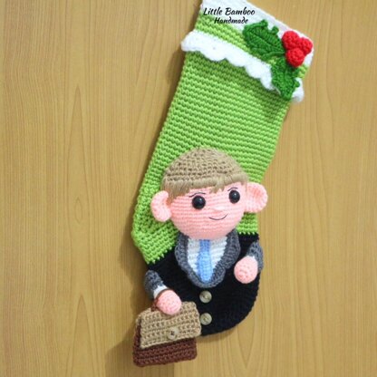 Written in English using US terminology. Suggested Materials & Tools: • 4 Ply Acrylic Yarn  - White - Light green - Light peach - Dark green - Black - Red - Blue - Dark grey - Light brown - Dark brown • Fiberfill or cotton • Crochet Hook Size 4 mm, 2 mm • 12 mm black eyes ( 2 ) • 10 mm brown buttons ( 3 ) Size: about 12.5 cm at the top and 32 cm diagonal from loop to toe Skill level: Easy