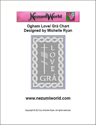 Ogham Large Love Gra Chart perfect for a table cloth, wallhanging or curtain. Gra means Love in Irish (Irish Gaelic) written using the old ogham script surrounded by an interlocking knotwork border design. First row is written for both a 1 x 1 & 1 x 2 filet crochet grid. Additional information sizes using different yarns is also included. i.e. Using Crochet Cotton Thread size 10: approx. width = 39.1 cm, height = 67.3 cm, Using Worsted Weight Yarn: approx. width = 153.2 cm, height = 247.7 cm. Uses UK crochet terms. Would make a wonderful wedding gift piece for that special family member or friend.