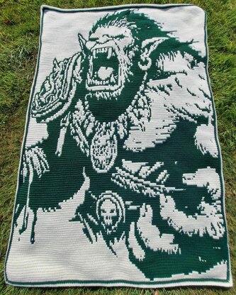 Prepare to unleash the power of Ogre Onslaught, the fourth instalment in my fantasy series of overlay mosaic crochet patterns! . This design includes tutorials for both the overlay mosaic technique and an envelope border, guiding crafters through each step of the process.