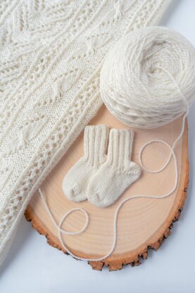 Knit socks fit for that baby in your life, using leftovers or stash yarn (or new!). Sock features a deep ribbed cuff, two heel choices, and two choices for toe closure. It may be further customized by using any 2-, 4-, or 6-stitch pattern for the cuff, rather than the 2-by-2 rib suggested (6-stitch patterns do not work with every size). Pattern includes seven sizes for babies and toddlers aged 3 mos to 3 years.