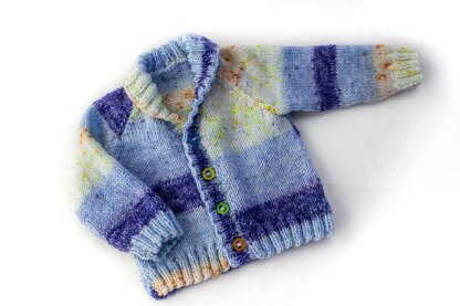 Every boy deserves to wear a classic, "Old School" cardigan, starting with the littlest of boys! This charming pattern for a Shawl Collared V-neck Cardigan with raglan sleeves is easy and quick to knit. Knit it either in a solid colour, or experiment with one of the many self striping yarns available, to get some beautiful results, without having to change yarn. It is a flat pattern with and minimal shaping involved. Pieces are knit separately and seamed at sides and raglan. The patterns comes in 6 sizes to fit 0-6 months, 6 - 12 months, 18 months, 2-3 years, 4-5 years and 6-7 years. Uses DK (8 ply), yarn and 3.5 (US4) and 4mm (US6) knitting needles.