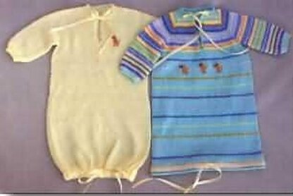 If anyone remembers the olden days, or babies flannel fabric sleeping bags, this is a knit version! It is fairly easy to knit, from top down. You can add the easy duck graph, or knit in stripes to use up yarn! This is so comfortable for babies! We like the bottom that ties with a ribbon, and opens up easily to change babys diaper. Warm and cozy, so baby will sleep the night away! Uses sport weight yarns, 24 circular US # 4. Fits babies up to 6 or 7 months. A great baby shower gift!