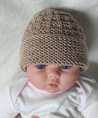 Olly - Baby’s 8ply texture stitch beanie with garter brim