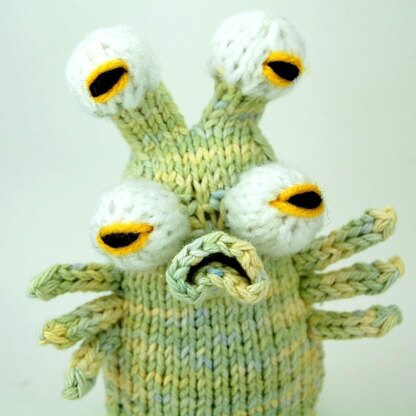 The body is knit in one piece, and the mouth and tentacles are knit separarately. There is only 1 seam to sew in the entire pattern! Basic increases and decreases, as well as short rows, are used in the shaping. Photos and stitch descriptions are included.