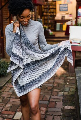 Get lost in the meditative stitches of the Omar Wrap, a striking crochet triangle scarf made from color-changing cake yarn. Cool shades of black, white, and gray combine with subtle variations in texture for a scarf you'll want to make again and again.
