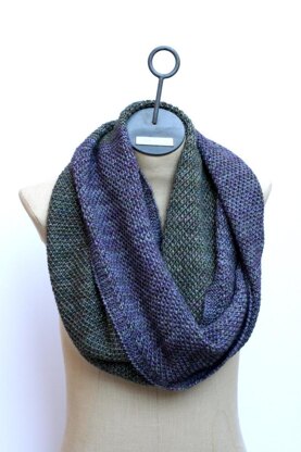This luscious cowl is the perfect all-season accessory. A lofty double knit stitch knit using two strands of lace weight alpaca and silk blend yarn makes for a soft, silky wrap that will provide just the right amount of warmth to keep the chill off without weighing you down. Created with two slightly varying color ways of hand dyed yarn, this cowl produces an ombre effect when wrapped up. An extra long circumference offers many styling possibilities and layers of softness and warmth. Bonus: no purling required!