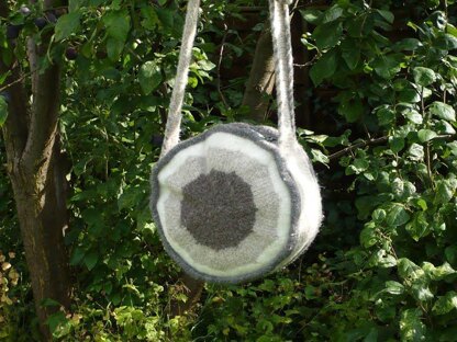 This felted bag is made in three sections, two circular pieces and the long strap, that also forms part of the bag. Though the pattern is written using DK weight yarn, it has been tested using worsted weight yarn and when the length of yarn specified and the gauge followed, the pattern has worked well.