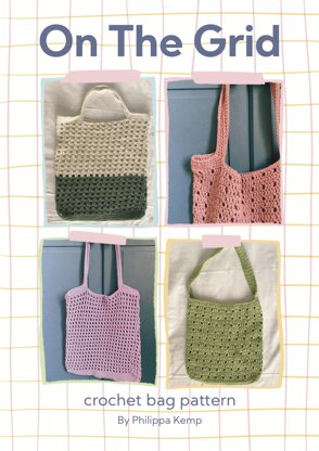 This customisable pattern has detailed instructions for how to adapt and customise the bag depending on what size or style you are making. There are three different 'grid' styles to chose from for the main section of the bag, an optional base extension and two different styles of handle for a tote or shoulder bag. The 'On The Grid' can be customised further with your choice of colour, colour blocking or stripes!