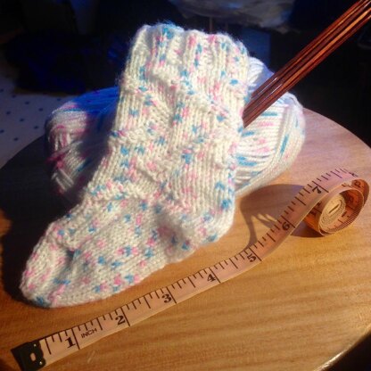 I guess I dont need to tell you how cute and tiny and wonderful baby feets are. And it is so wonderful to have a fast knitted object which is sooo useful. So grab your needles and get started for some cute baby socks.