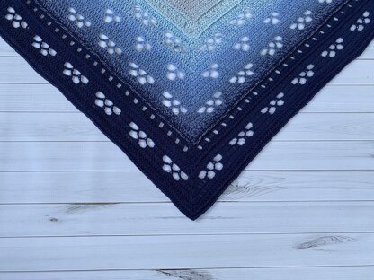 Once Upon a Cloud features delicate clouds floating on a blue background. The blanket is worked in the round from the center. The size is adjustable and the pattern has been tested in a variety of yarn weights.