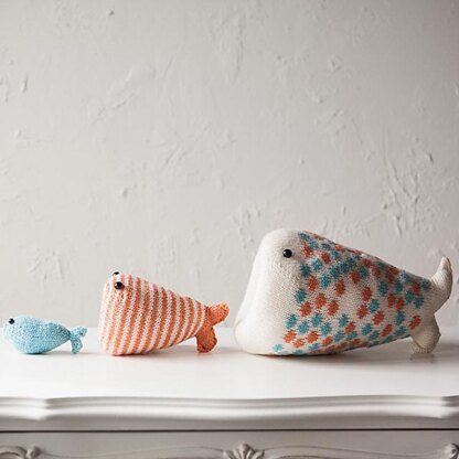 This trio of fish will give the giggles to children of all ages. Make one as a gift or a whole school, as a food chain! Knitted in the round from mouth to tail, you'll complete them in no time and enjoy them forever.