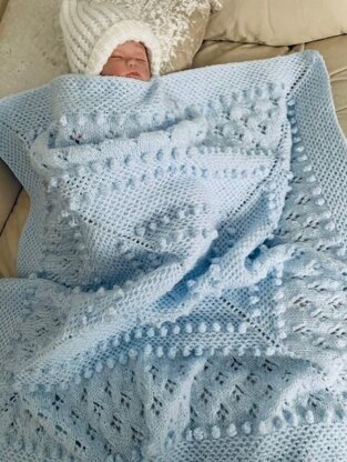 *ONE FOR THE BOYS* knitting pattern for this baby blanket (in English) is clearly written and clearly laid out. There are photos as guidance should it be needed. I have used 300gms of Stylecraft Special for Babies on 5mm knittiing needles. The colour is Blue Marl. Lovely yarn to knit with. Approx finished size is 32x32ins/82x82cns There are quite a few bobbles but these are very simple, just turning the once. All the stitches are suitable for an intermediate knitter or even advanced beginner. Nothing hard You could easily make a bigger version just by adding more rows but remember it will take more yarn. All patterns are pdf only, please, please do not ask for a printed pattern as the answer will be no.