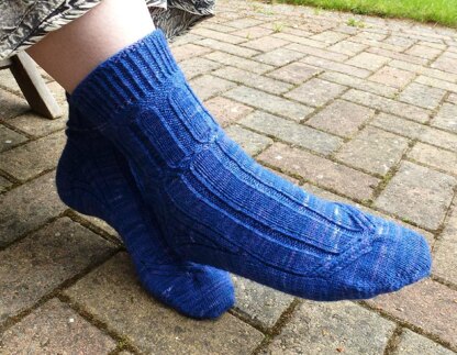 An interesting sock, knit toe-up. It combines a classic look with some more unusual elements, such as a patterned gusset. The pattern is charted, but for each chart the instructions are written out in full, on a separate page so you can choose what to print.