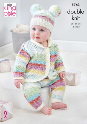 Onesie, Cardigan, Trousers and Hats Knitted in King Cole Baby Splash DK - 5763 - Downloadable PDF