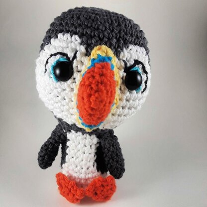 In this pattern you will learn how to crochet a puffin chick inspired by the character Oona from the show Puffin Rock. Your finished puffin will be about 7 inches tall.