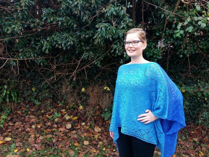 Keep the chill off with this two colour poncho. Two bold lace patterns are combined for an elegant addition to your wardrobe. Operetta is worked sideways in two identical pieces which are later seamed. Pattern includes two sizes. Smaller size is modelled by a tall, slim model.