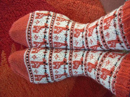 This is a detailed and test-knitted sock knitting instruction for the free orange giraffe chart pattern that I published in September.