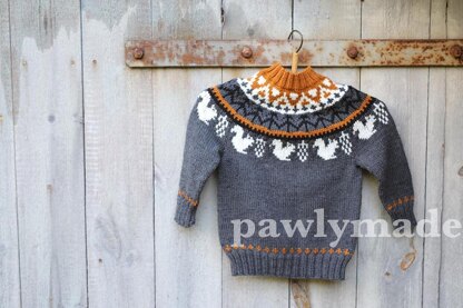 This top down fairisle-sweater with Scandinavian motifs was inspired by a traditional Finnish children's song about a squirrel going to sleep.