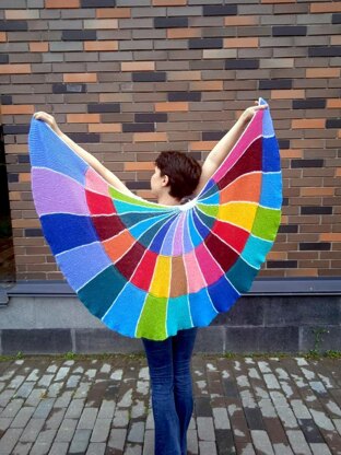 This shawl is similar to Nautilus Pompilius, but there are some differences in the stripe sequence, and in the way the tiers are joined. There are no seams, as everything is knit-on, tier after tier.