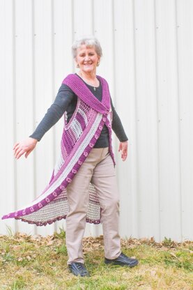 Floral accents and optional stripes turn the Orchid Vest into a statement piece. It’s a perfect garment for the transition seasons.
