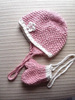 Organic Cotton Set Hat and Mittens For a Girl 12-18 months