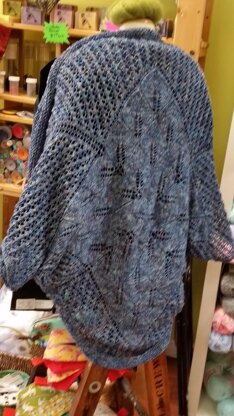 This shrug is knit in the round until you have a large square.  It is folded and sewn to create a sweater, but it feels more like a shawl.