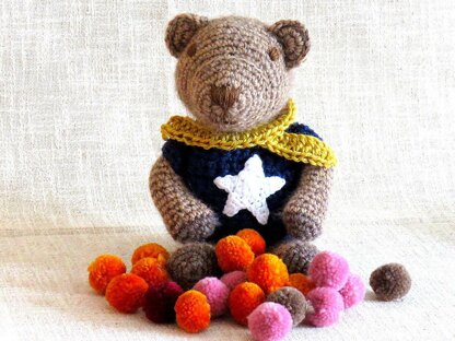 Oscar bear is a cute and cuddly traditional style teddy bear. He originally appeared in the crochet toy supplement cover gift with issue 3 of Crochet Now magazine. He is designed using simple amigurumi techniques in order to be suitable for a beginner. You'll need the following skills: Double crochet in rounds, increasing and decreasing. You will need approximately 200m of DK yarn if you wish to substitute. When choosing a hook size, it is important to make sure your stitches are close enough that stuffing will not work through. You will also need some toy stuffing, plastic eyes and nose or embroidery thread if making for a child. A locking stitch marker is recommended to help you keep track of rounds. THis is a written pattern, without step by step photos, but you will find plenty of helpful advice on my website (including photos) if you are new to amigurumi techniques.