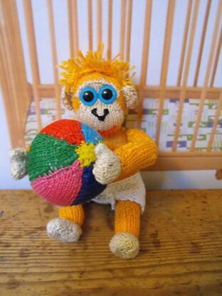 This is Oscar the Baby Orangutan. He is very quick and easy to make. The pattern provides instructions to make a jointed version with moving head arms and legs or a simpler non-jointed version as can be seen here. Oscar is 36 cm high when made up and can be knitted in any dk of your choice.The pattern also provides instructions to knit his nappy (diaper) and his ball. Oscar has a big brother called Ollie and a very hairy dad called Ozzie so have a look at my other patterns. Why not also visit my website www.madmonkeyknits.com. Mad things happen there!