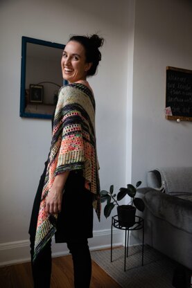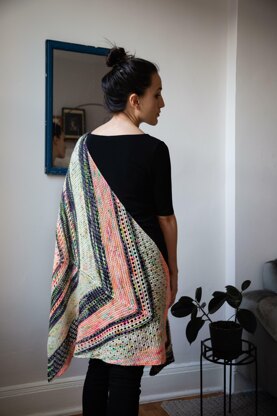 Ostinato is a long, drapey, asymmetrical triangle shawl worked sideways from one corner. The pattern features sections worked in differently textured stitches for a fun and quirky effect.