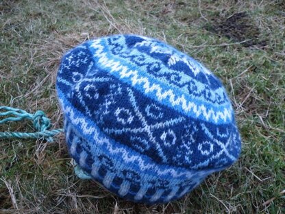 This pattern is of a traditional Fair Isle beret or tam shape which when knitted can be blocked on a dinner plate; alternatively you can have a hat more beanie shaped if you block it on a pasta bowl.