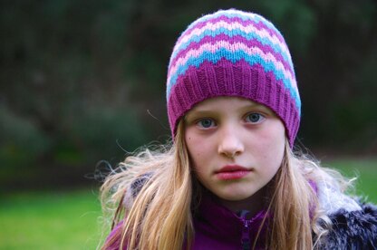 Otways is a simple colourwork beanie knit from the brim upwards. The three colours form a neat little chevron pattern that is perfect for those new to colourwork. Two colours are worked at a time for two of every four rounds, and colours are never carried more than three stitches.