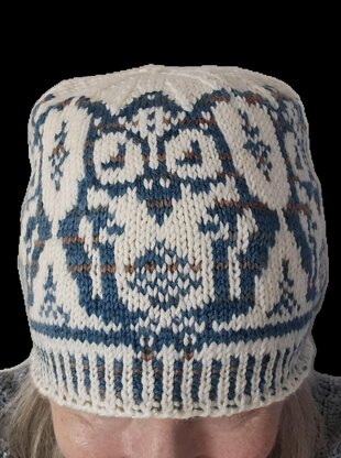 Oule is a cozy stranded colourwork beanie adorned with a repeating owl motif that circles the hat over corrugated ribbing. Worked seamlessly in the round, this design uses two contrasting colours of 4-ply fingering-weight sock yarn to let the owls truly take flight. The pattern includes both written instructions and a colourwork chart. Instructions are provided for one size. Oule is the Middle English word for owl. Both a chart and full instructions are included. Background colour: Morris & Sons Empire 100% Superfine Merino 4 Ply, colour: 400 Soft White. Sample shown used approximately 125 m. Contrast colour: Chardyglen Designs Merino SuperSoft sock yarn 4 Ply 75% Merino 25% Nylon, colour: Jasper Moon. Sample shown used approximately 65 m. For best results ensure that the contrast colour is dominate and stands out well against the background colour.