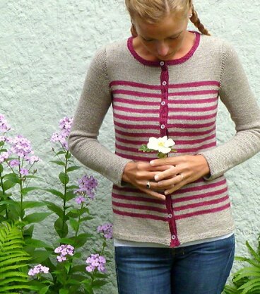 Outback is a fun-to-knit easy to wear cardigan – stripes keep the knitting fast and top-down construction ensures a perfect fit!