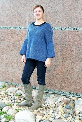 If the warm weather’s over . . . Here’s an over the head, over-sized, and an over-comfortable sweater for throwing on when you need to feel enveloped with wool. Watch it snow, drink some tea and scoot closer to the fire. Over’s ready for you! The lofty, light texture of Lopi, a bulky-weight single-ply wool, creates a draped, light effect when knitted on larger needles, but each air pocket holds in warmth. This bottom-up pullover’s knit in the round, requiring knitting, purling, decreases, and a three needle bind-off if you like. The sleeve length is designed to hit at the wrist bone (to avoid getting in your soup!) but can be easily adjusted for a personalized fit. It’s an ideal first sweater.