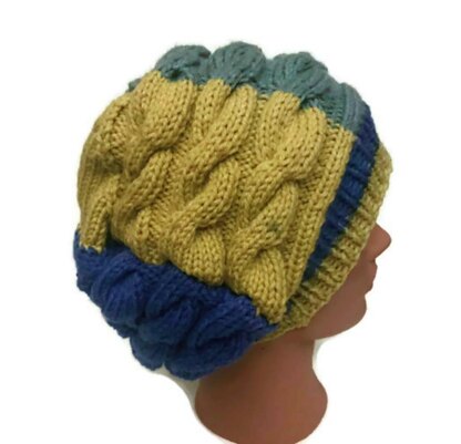 Keep your head warm and toasty with this Knit over sized cabled hat. Slouchy and stretchy, compliments any outfit.