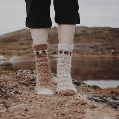 The socks are knitted top-down and in the round. The heels are knitted using the afterthought heel technique.