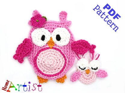 The pattern provides instructions to make a cute crochet applique that can be used in inumerable ways...decorate and personalize your favorite objects like hats, t-shirts, bags, school knap-sacks and lots of other stuff you can think of. The Owl measures about: Mama: 2 1/2 inches across by 3 1/2 inches tall Baby: 1 1/2 inches across by 1 1/2 inches tall but the size can be varied by using thinner or thicker yarn and types of hook. Colors can be changed according to your personal preference. The pattern is designed for worsted weight yarn and uses American English crochet terms. This crochet pattern is available for Instant Download. Once your payment is received, you will get an email with the download link and details of your order. In case of problems feel free to contact me anytime.