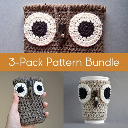 This owl crochet pattern bundle includes three PDF downloads for my popular rustic fall tutorials: a coffee sleeve, a phone case and a cozy bag. Each pattern is easy, friendly for an adventurous beginner. All pattern files include detailed written instructions and step-by-step photos. Skill Level: Easy. Craft: Crochet. Pattern is written in standard American crochet terminilogy. LANGUAGE English YARN worsted weight yarn SUGGESTED YARN Lion Brand Vanna’s Choice (3oz/85g, 145yds/133m). Featured are colors Oatmeal and Barley SUGGESTED HOOK size H (5mm) crochet hook SUGGESTED NOTIONS removable stitch marker tapestry needle button of your choice, approx 1” long