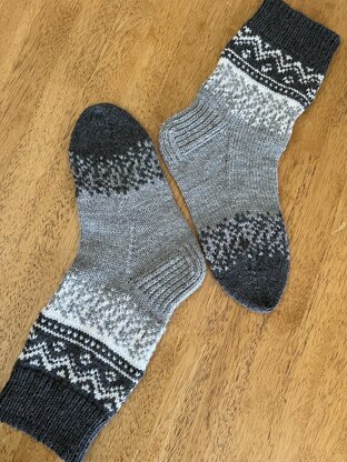 • 8 ply yarn 150g light grey,100 g dark grey, 50g white
