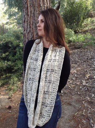 I am a huge Potter fan! I also love anything owls. Owlery is a cowl knit in the round which begins with an eyelet bottom border, followed by the body section using simple lace pattern that can be easily memorized, and ends with a top eyelet border. If you look very closely, you just might find owls sitting in the Owlery waiting to post messages from the students at Hogwarts!