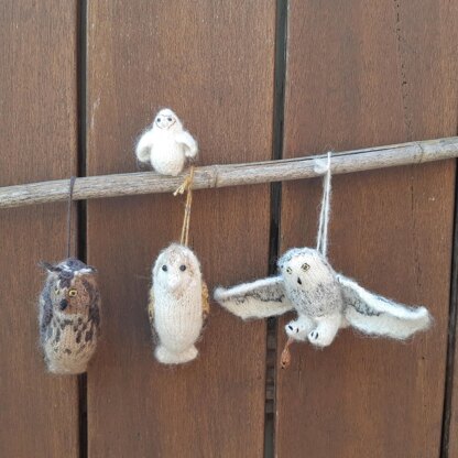 There are three owl species included in this pattern: the barn owl and owl chick, the (Eurasian) eagle-owl and the snowy owl, with the pattern for a tiny wood mouse (in miniature knitting) included. Each owl is an easy, fast project, that can be finished in an evening or so and a great way to use up any scraps you have lying around. Your owls will come out more life-like with a variation in colors and textures of your chosen yarns.