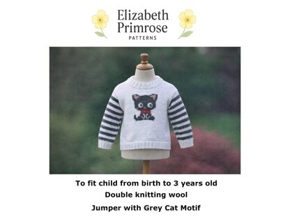 P021 Grey Cat Motif Jumper