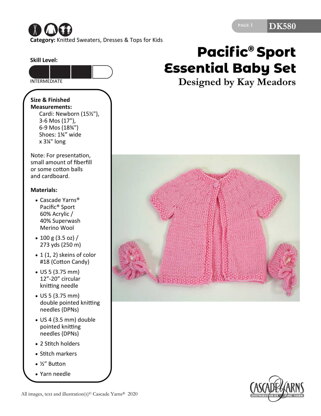 Pacific Sport Essential Baby Set in Cascade Yarns - DK580 - Downloadable PDF is a free Intermediate Knitting pattern by Kay Meadors, available as a Downloadable PDF and includes instructions in English. Super fun to make, this pattern could be your next masterpiece!