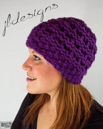 The Palmyra Beanie is made with the 36 peg 3/4" gauge round loom (cindwood, knifty knitter green, boye, darice, loops & thread) and roughly 65-75 yards of bulky # 5 yarn (sample done using less than one skein of loops & thread charisma yarn in color dark purple).