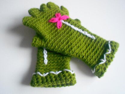 This pattern is a great accessory for cooler days. It can be made as finger less or half finger , it is very easy to make changes to it in terms of embellishments , colors and sizes... Cold night at the computer made me think I needed these, then a workmate asked for some with half fingers, after that I had a pattern! Enjoy! The yarn specified is not the one used for the models previously crocheted; but the Hayfield Bonus DK should work great. You need two contrasting colors of your choice; olive and Aran are just suggestions.